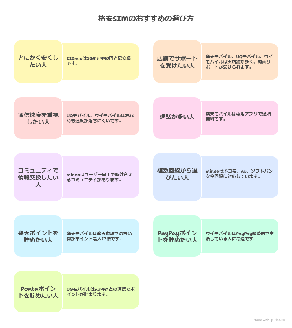 自分が何を重視するか決めれば、選ぶべき格安SIMが見えてきます。