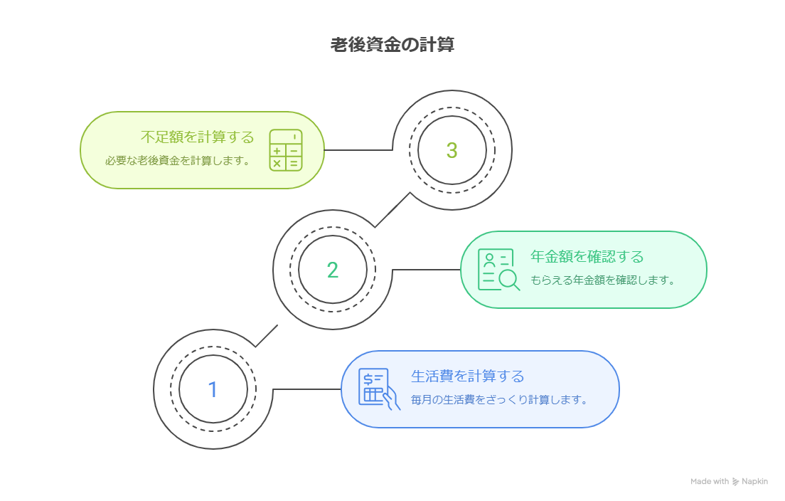 老後資金の計算、難しそうに見えますよね。でも、実はたった3ステップで簡単に計算できるんです。