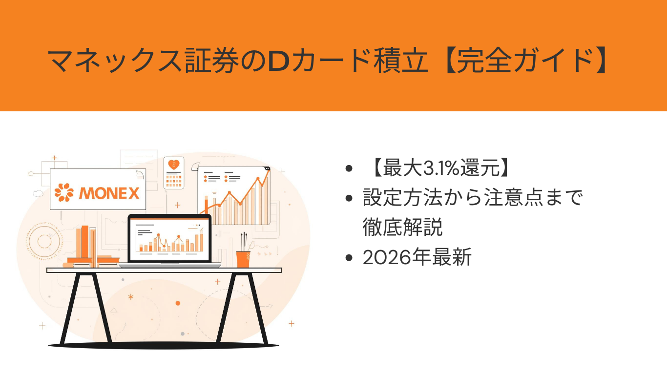 この記事では、マネックス証券のdカード積立について、ポイント還元率、設定方法、注意点まで、公式情報に基づいて詳しく解説します。
